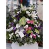 Seasonal flowers, lilys and roses are used to create an impressive fragrant arrangement. It has an average height and width of 60-70cm.