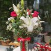 This exquisite arrangement is a perfect harmony of elegance and indulgence. Featuring one majestic Casablanca lily and three vibrant red roses, artistically arranged in a modern glass vase, this design captures timeless beauty and sophistication.