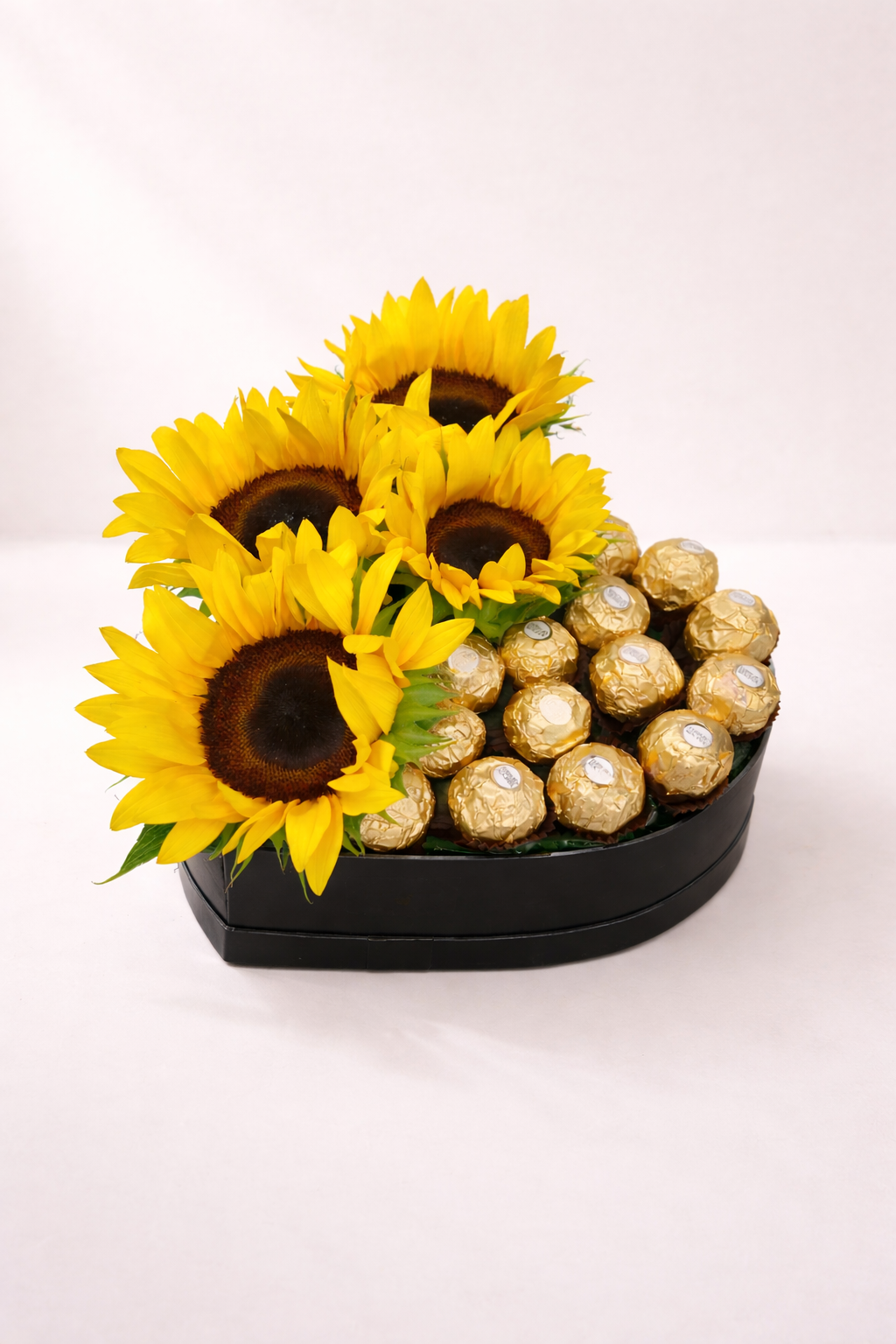 It is carefully prepared with sunflowers and ferrero rocher chocolates.