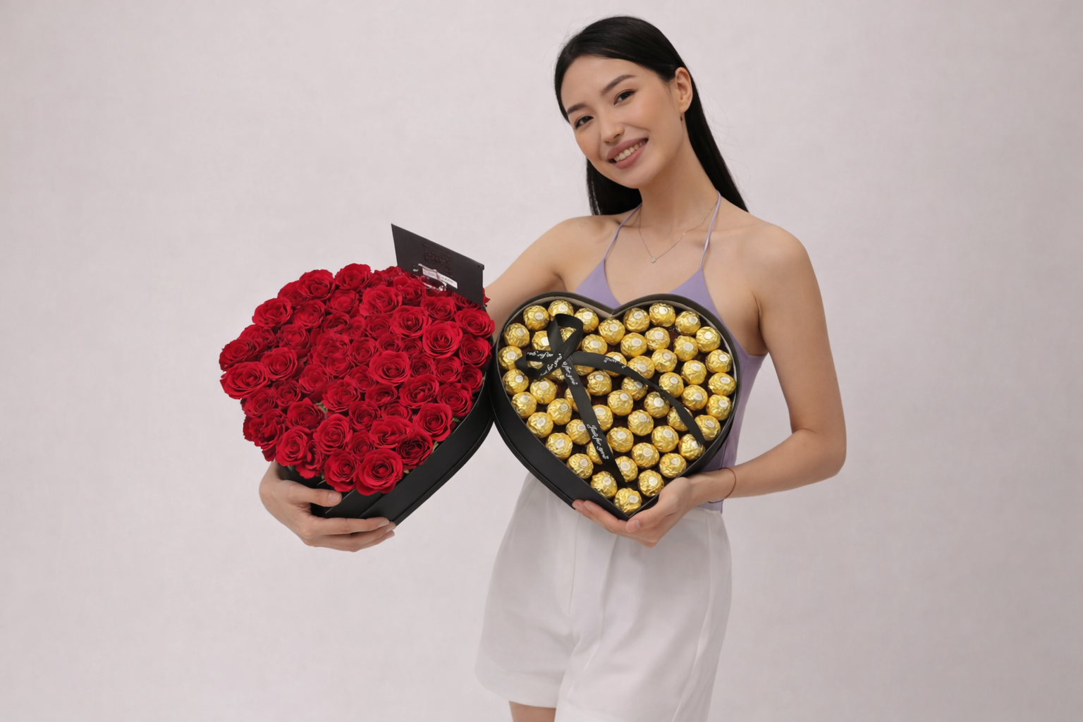 Romantic Heart Box – 51 Roses & Ferrero