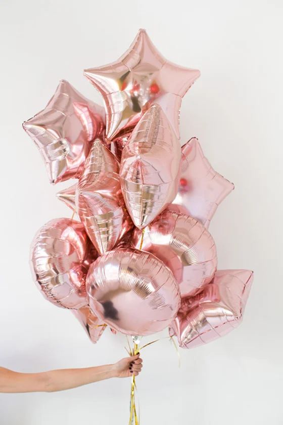 The rose gold balloon set, consisting of 12 star, round, and heart-shaped balloons, is an elegant and stylish decorative item. It is filled with original helium gas, ensuring the balloons stay afloat for an extended period and providing safe use. The absence of risks like burning or bursting makes it suitable for both indoor and outdoor events.