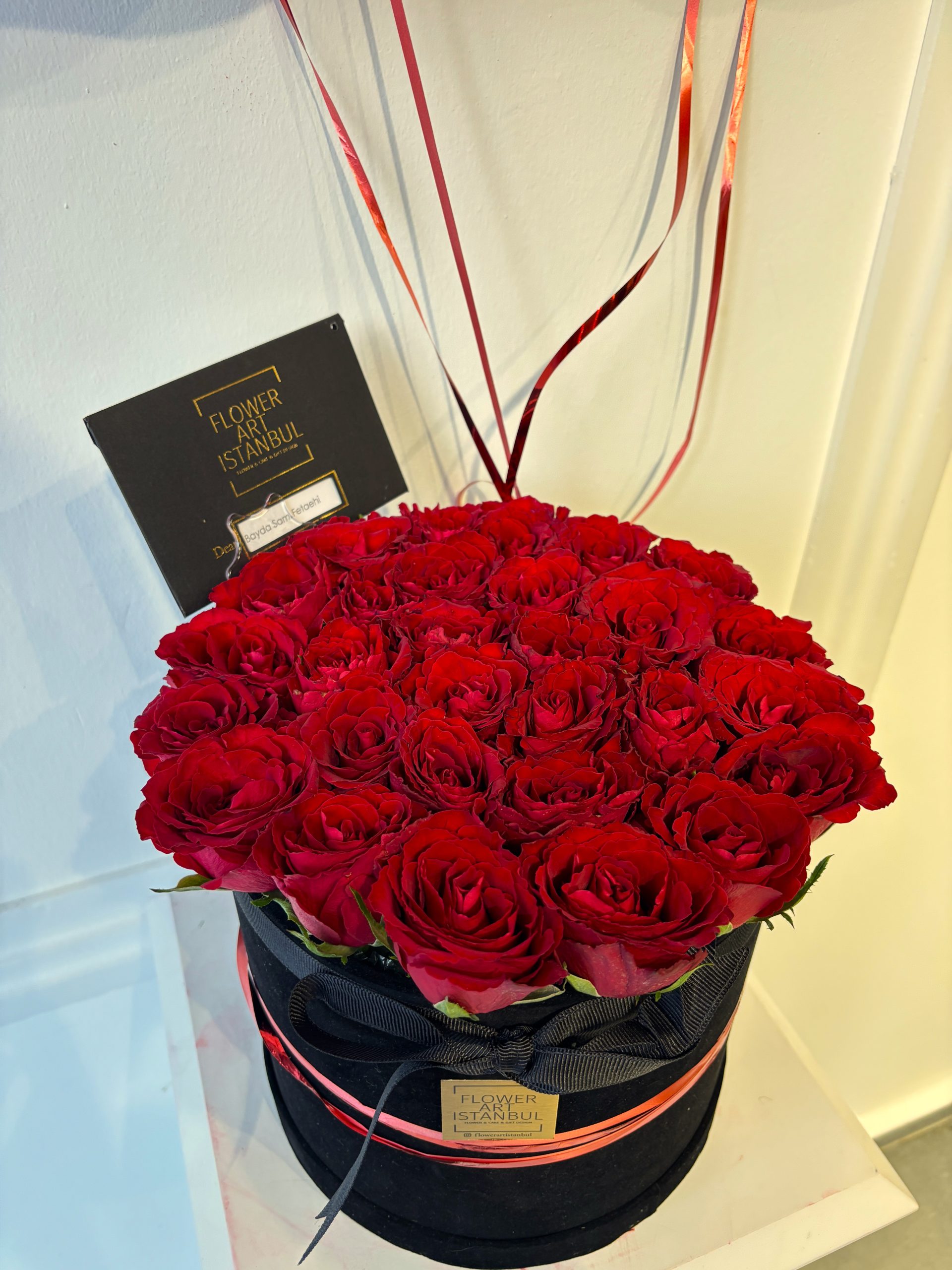It has been carefully designed with the most exquisite 23-25 premium roses. Inside the black velvet box, there is a special water-absorbing sponge and nourishing water, ensuring that your roses stay fresh for a long time without the need for a vase.
